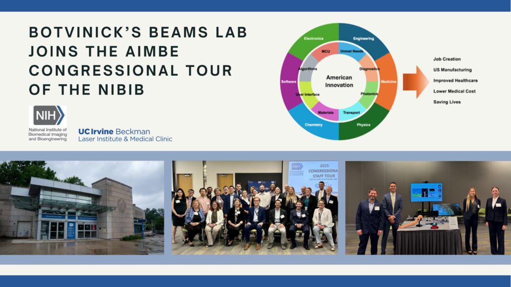 On July 18, 2025, Dr. Elliot Botvinck’s Bio-Engineering of Advanced Mechanical Systems (BEAMS) laboratory was selected by the American Institute of Medical and Biological Engineering (AIMBE) to participate in a technology demonstration during the Congressional Tour of the National Institute of Biomedical Imaging and Bioengineering (NIBIB). The event welcomed more than 56 congressional staff members to the NIH, where they observed cutting-edge technology demonstrations presented by NIBIB grantees. Staff members also toured laboratories of NIBIB intramural researchers to learn about groundbreaking biomedical research advancements supported by the Institute.